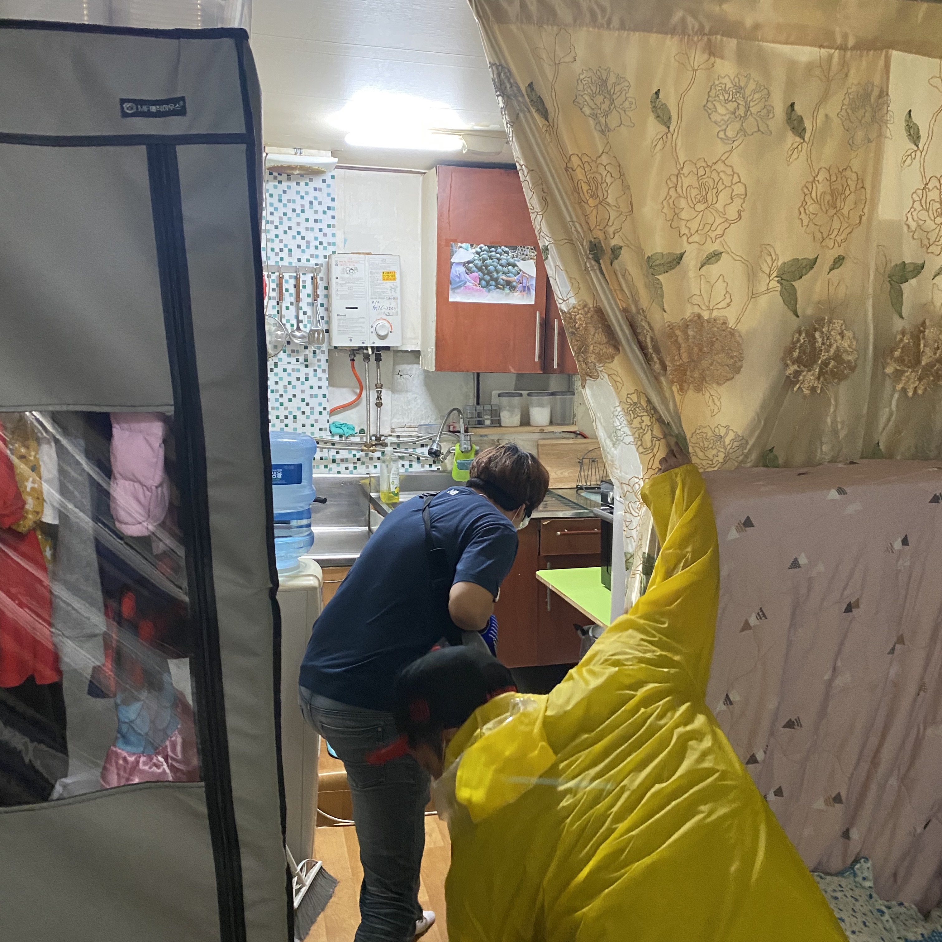 이주민 숙소 곳 곳을 찾아다니며 방역봉사를 시작한 샬롬봉사단,