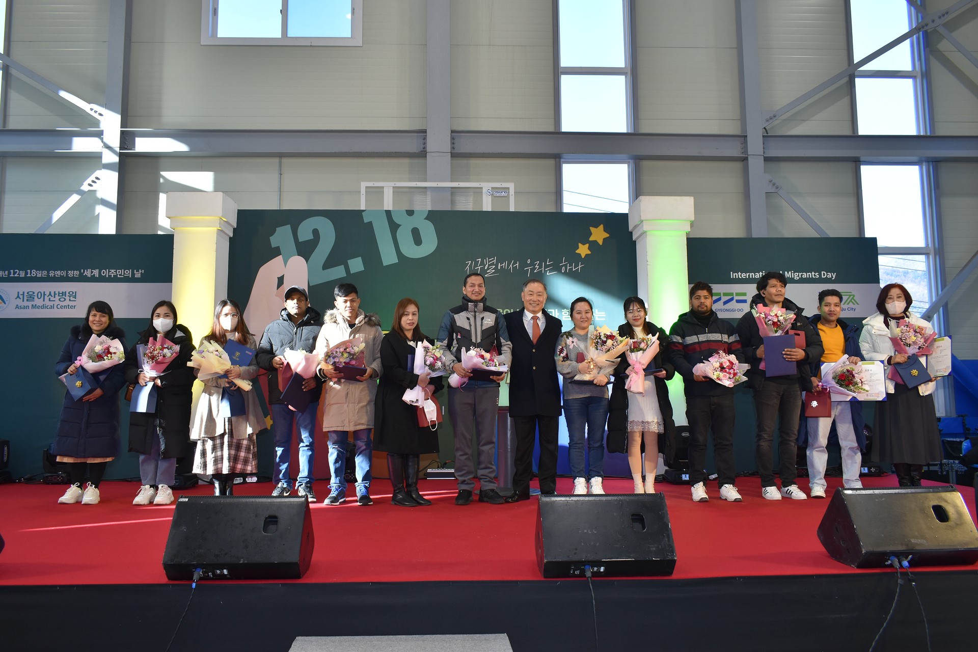 남양주시외국인복지센터(센터장 이영신부)는 12월 17일 세계이주민의 날 행사를 성황리에 개최하였다. 지난 2021년부터 매년 12월 18일을 전후하여 유엔이 정한 세계이주민의날 행사를 추진해왔다. 벌써 3회째를 맞이하는 이번 행사는 이주민의 인권과 권리를 보장하기 위한 인식개선의 장인 동시에 센터의 이주민 사업에 대한 한 해 성과정리를 위한 자리이기도 하다. 이날 행사에 이주민과 선주민 300여명이 함께 모여 축하의 마당이 펼쳐졌다. 1부 기념식에서는 한해동안 성실히 한국어교실에서 공부한 모범 학생들에 대한 시상식이 펼쳐졌고, 남양주에 터를 잡은 4개국(방글라데시, 베트남, 중국, 필리핀) 공동체의 감사인사도 이어졌다. 2부 축하무대에서는 필리핀, 중국, 베트남 동아리들의 공연과 초대 공연으로잼스틱의 신나는 타악퍼포먼스와 히든싱어의 가수 나건필씨가 함께 하여 흥겨운 시간을 보냈다.