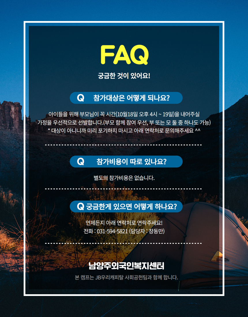 우다다캠프 참가자를 모집합니다. 관심있는 다문화가정의 많은 참여를 바랍니다.