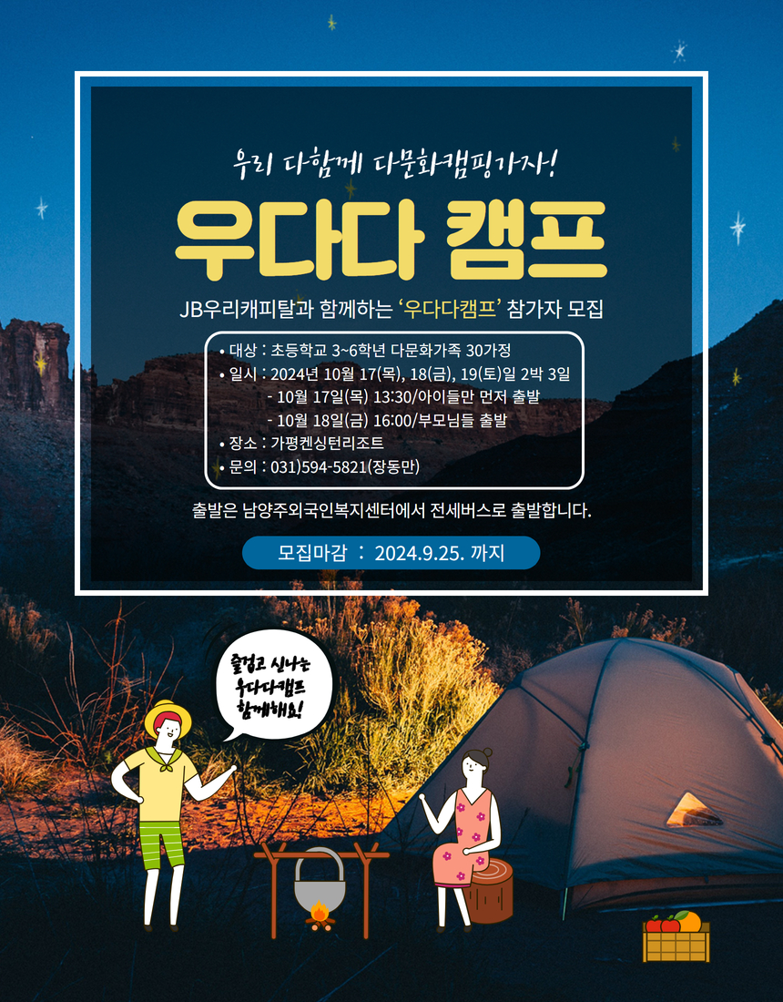 우다다캠프 참가자를 모집합니다. 관심있는 다문화가정의 많은 참여를 바랍니다.
