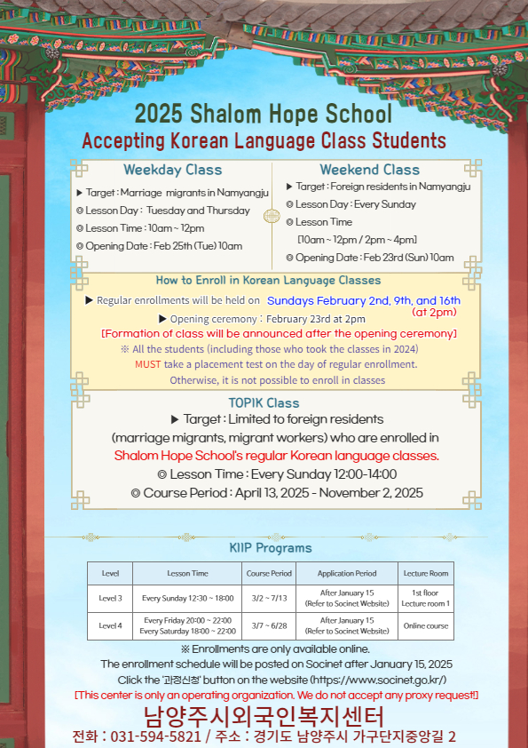 샬롬희망학교(한국어교실) 회원모집