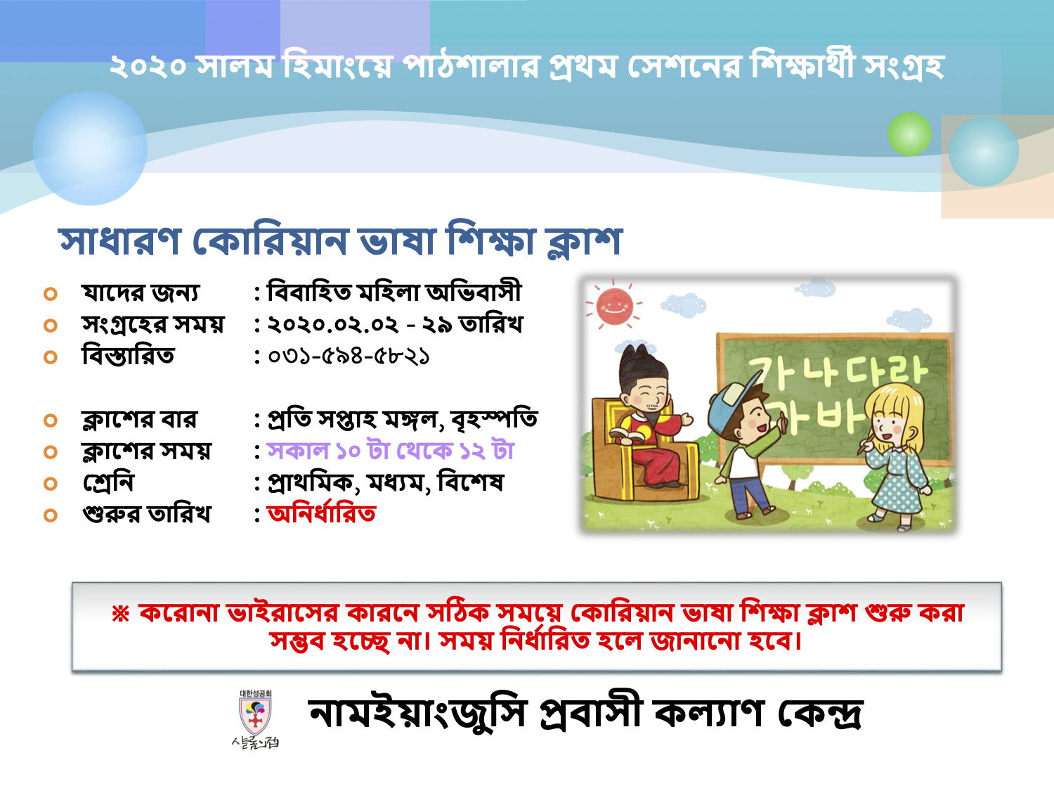| 한국어교실 개강연기 안내_이주여성 (0) | 2020.02.12 |