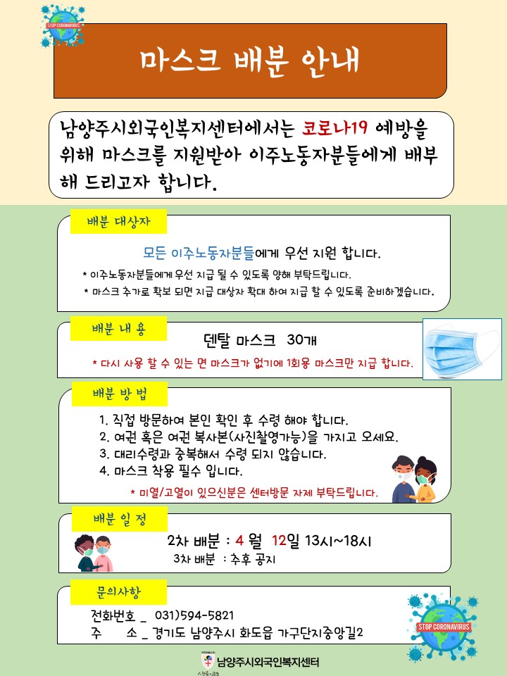 Ang Namyangju City Migrant Center ay nakakuha ng suporta para sa pagdidistribute ng mask para sa mga migranteng manggagawa at para maka iwas sa COVID19