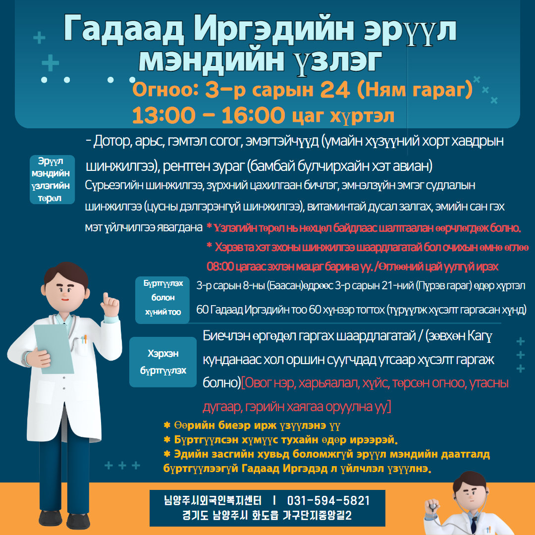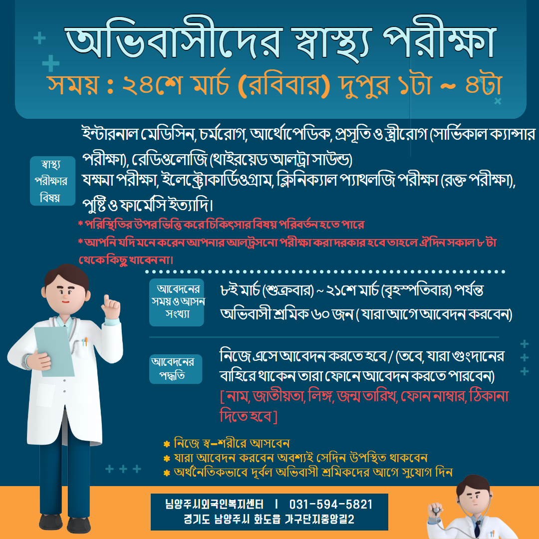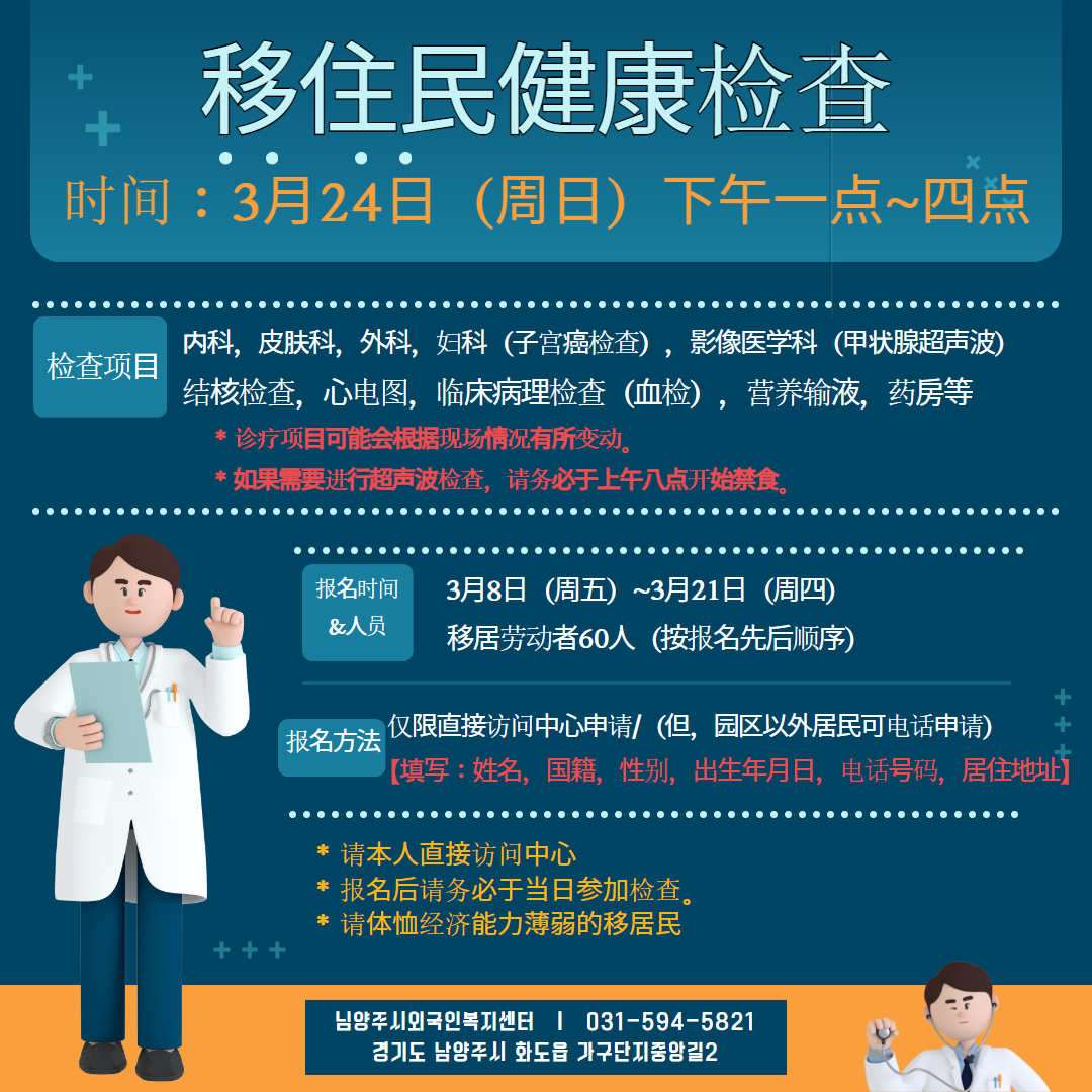 이주민건강검진 신청하세요!